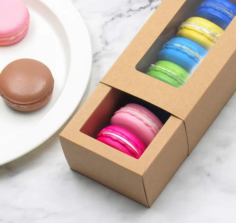 • Monthly Macaron Subscriptions : Ship boxes via mail with padded inserts; clear windows create an “unboxing reveal” for subscribers, while kraft’s recyclability reduces shipping waste.