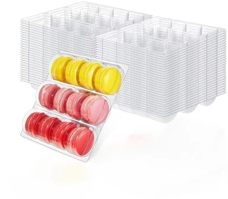 • Used for packaging delicate desserts like macarons and cupcakes . The transparent body visually showcases products to attract customers , while the partitioned design prevents collision damage during delivery , enhancing the consumption experience.