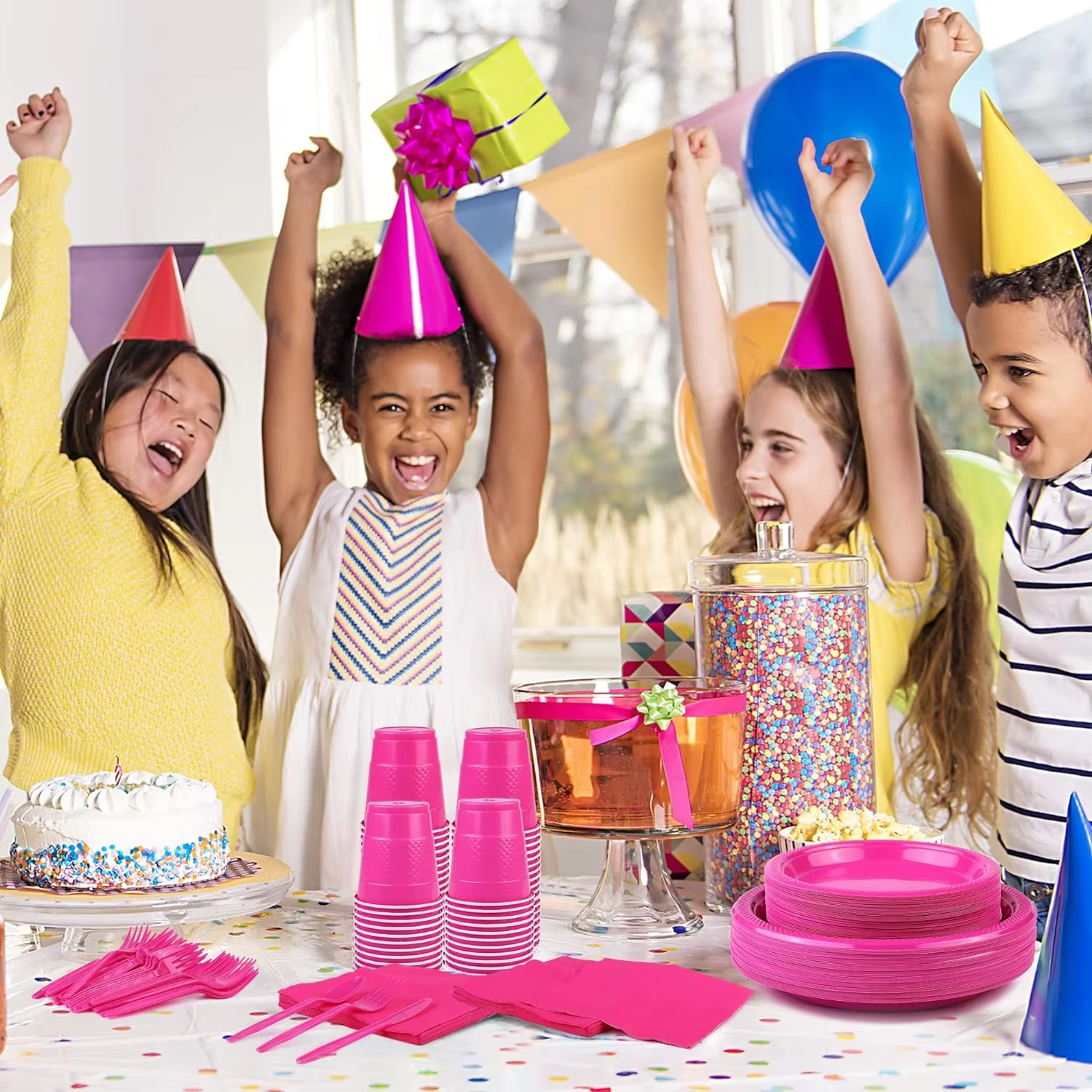 Pink Disposable Plastic Dinnerware Set Blister Processed Household Party Supplies for Food Use